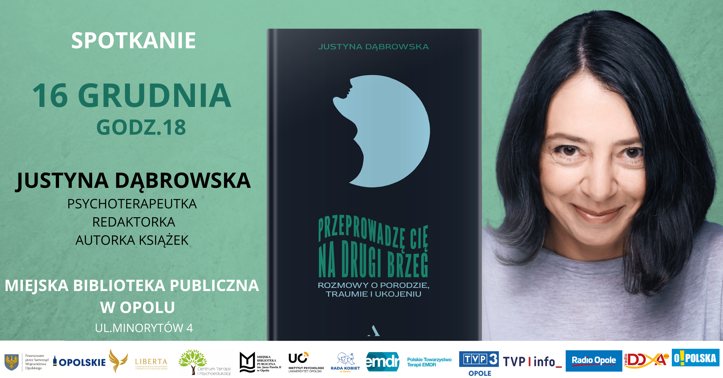 Serdecznie zapraszamy 16 grudnia 2025 r. o godzinie 18:00 do Miejskiej Biblioteki Publicznej w Opolu przy ul. Minorytów 4 na spotkanie z Justyną Dąbrowską – psychoterapeutką, psycholożką, redaktorką Gazety Wyborczej i autorką książek od lat wspierającą kobiety w momentach szczególnego życiowego napięcia. Autorka towarzyszyła wielu matkom w ciąży, połogu oraz po trudnych i granicznych doświadczeniach porodowych. Obecnie prowadzi terapię indywidualną, łącząc perspektywę psychodynamiczną z podejściami, których uczyła się w londyńskim Anna Freud Centre.